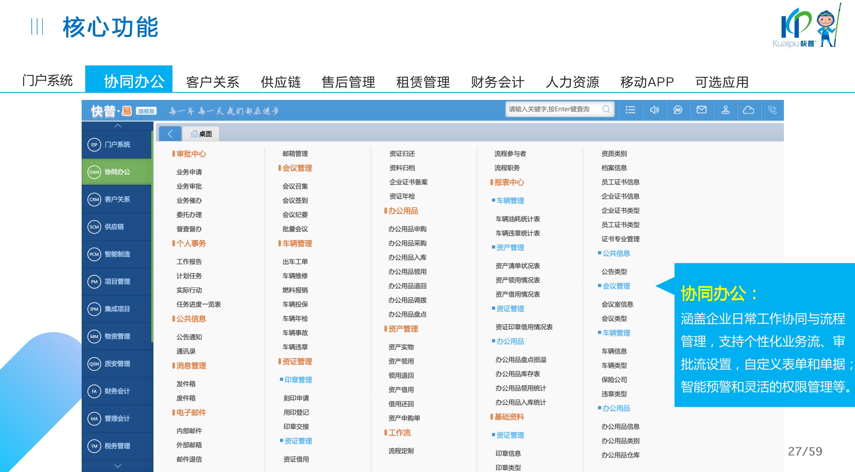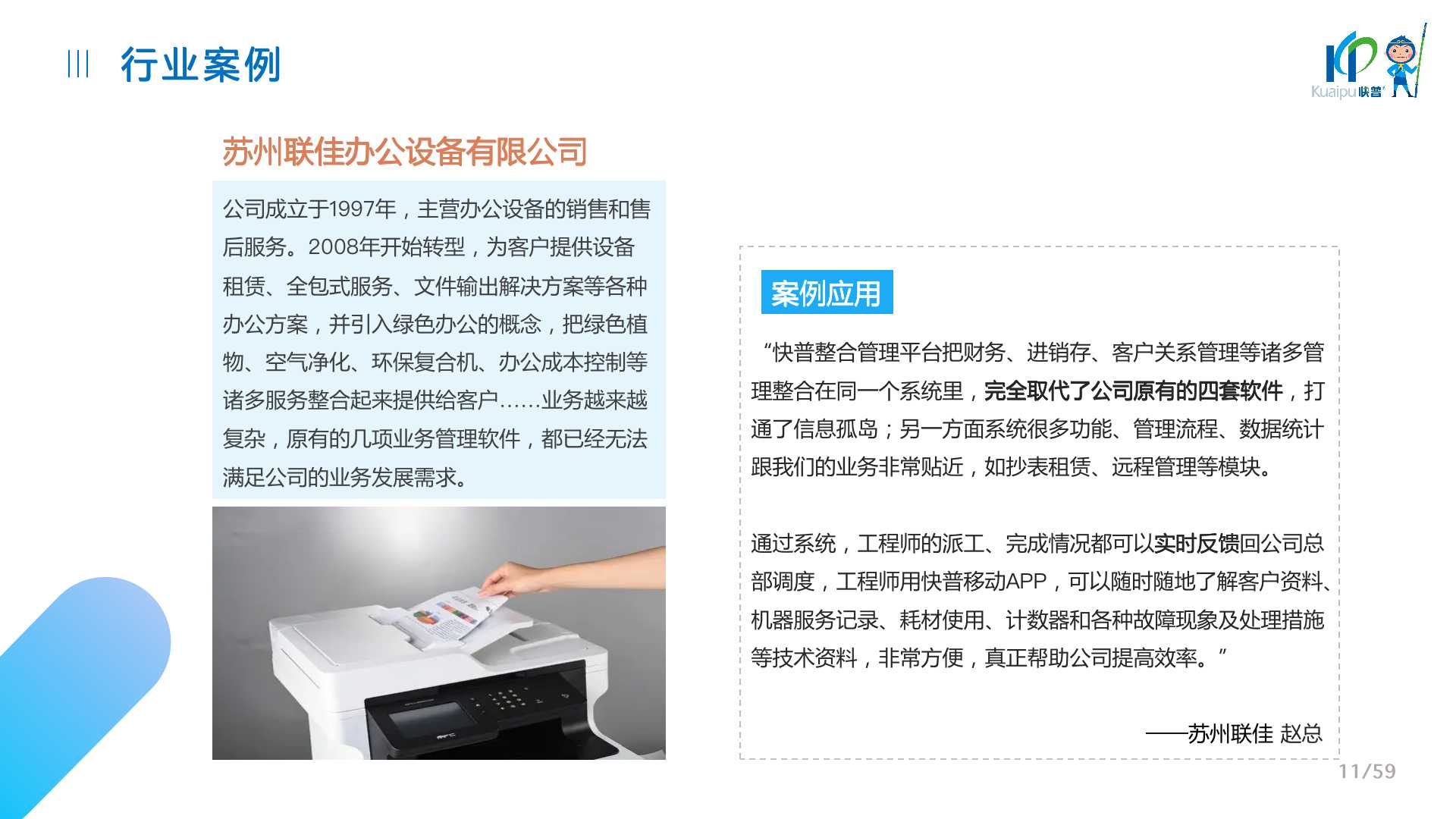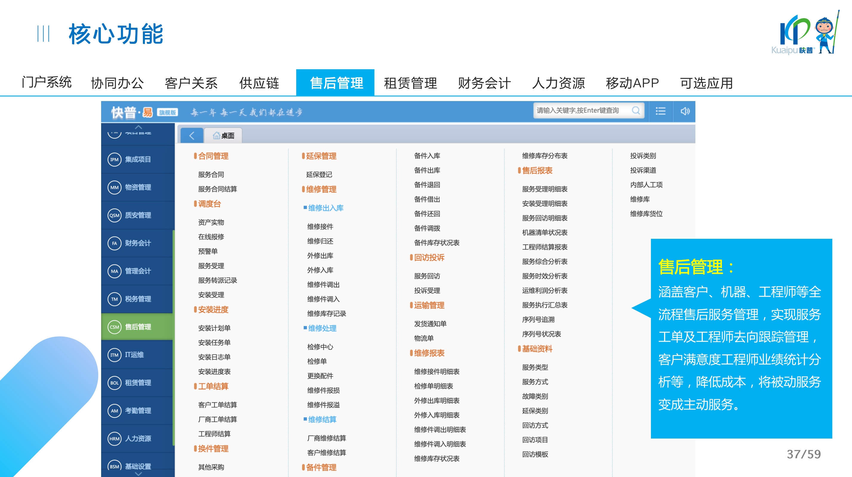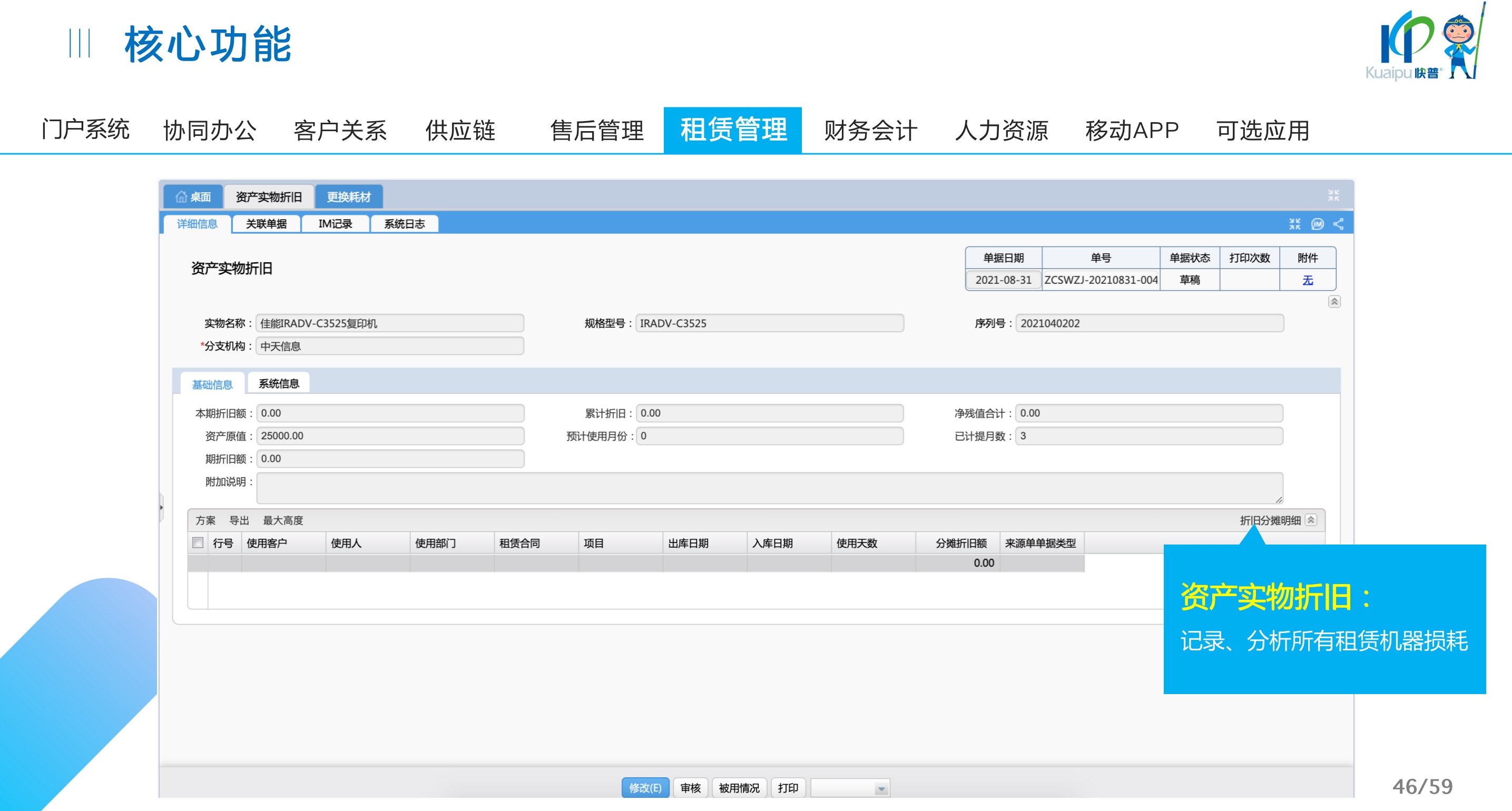 快普易30基于快普近20年在全國上萬家OA企業(yè)的實施與服務(wù)經(jīng)驗,融合了行業(yè)成功的管理智慧,以“客戶+機器”為中心提供數(shù)字化轉(zhuǎn)型解決方案,全面解決銷售、服務(wù)、租賃等多種業(yè)務(wù)模式的管理需求,以及企業(yè)經(jīng)營核算分析。