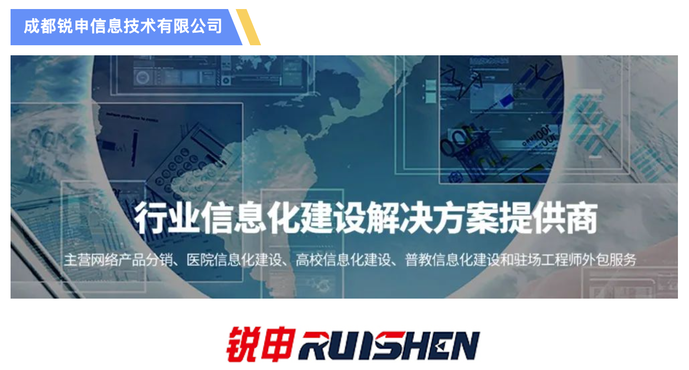 成都銳申信息技術(shù)有限公司(簡稱“成都銳申”)成立于2012年,是一家專注于行業(yè)信息化基礎(chǔ)設(shè)施建設(shè)及咨詢的專業(yè)化公司。